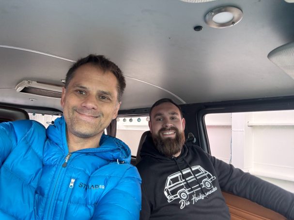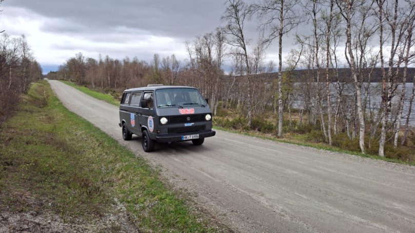 Heute stand etwas Besonderes auf dem Plan: Beifahrerwechsel! Und ich konnte es mir natürlich nicht nehmen lassen, die Gelegenheit zu nutzen und bei Felix in seinen T3 zu springen. Dessen 1,9 TDI Motor aus einem Audi A6, der im Heck, hat mich schon die ganze Rally über neugierig gemacht. Felix und sein T3 sind ein echtes Dream-Team.
