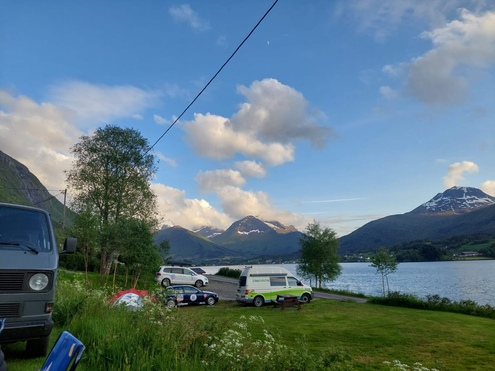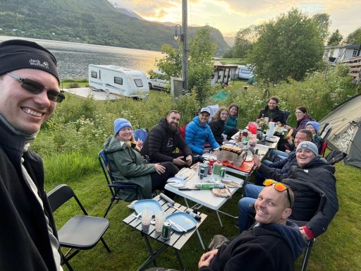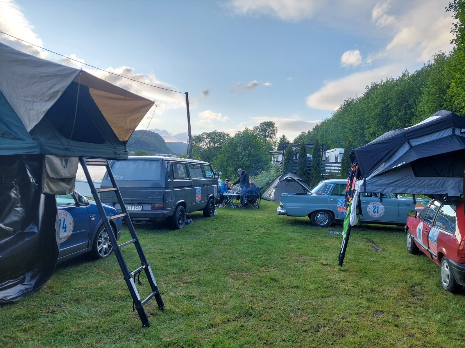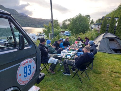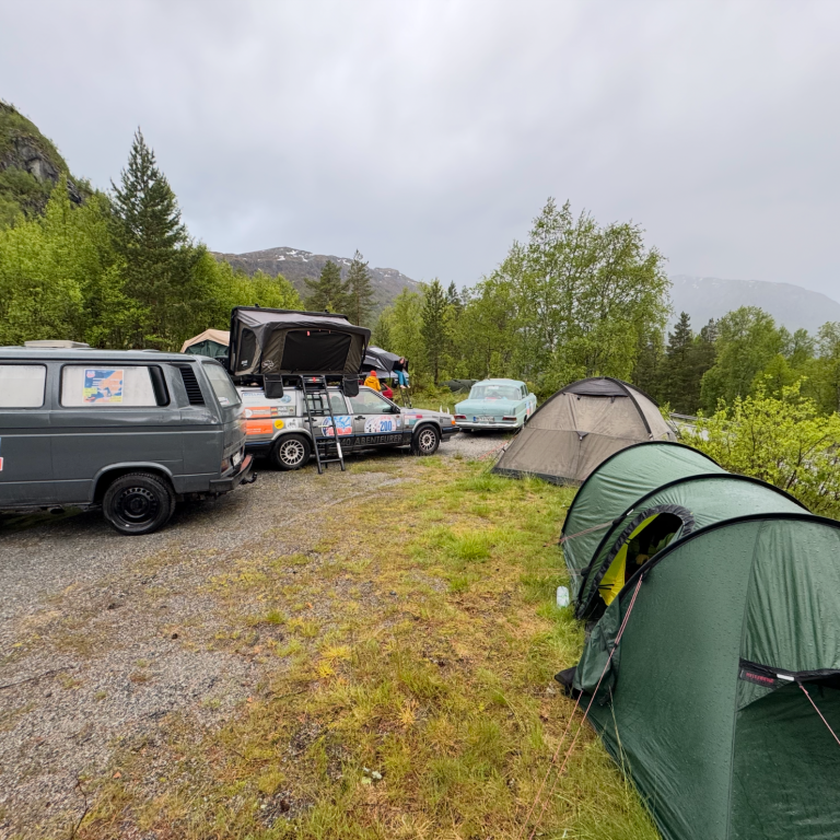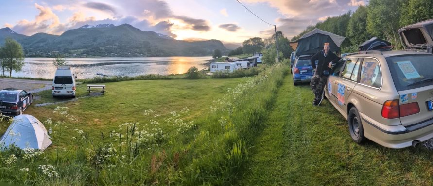 Nach einem ereignisreichen Tag auf der Rally haben wir am Abend einen traumhaften Campingplatz direkt am Fjord gefunden. Die Kulisse war einfach atemberaubend – das glitzernde Wasser, die frische Luft und die Berge im Hintergrund.