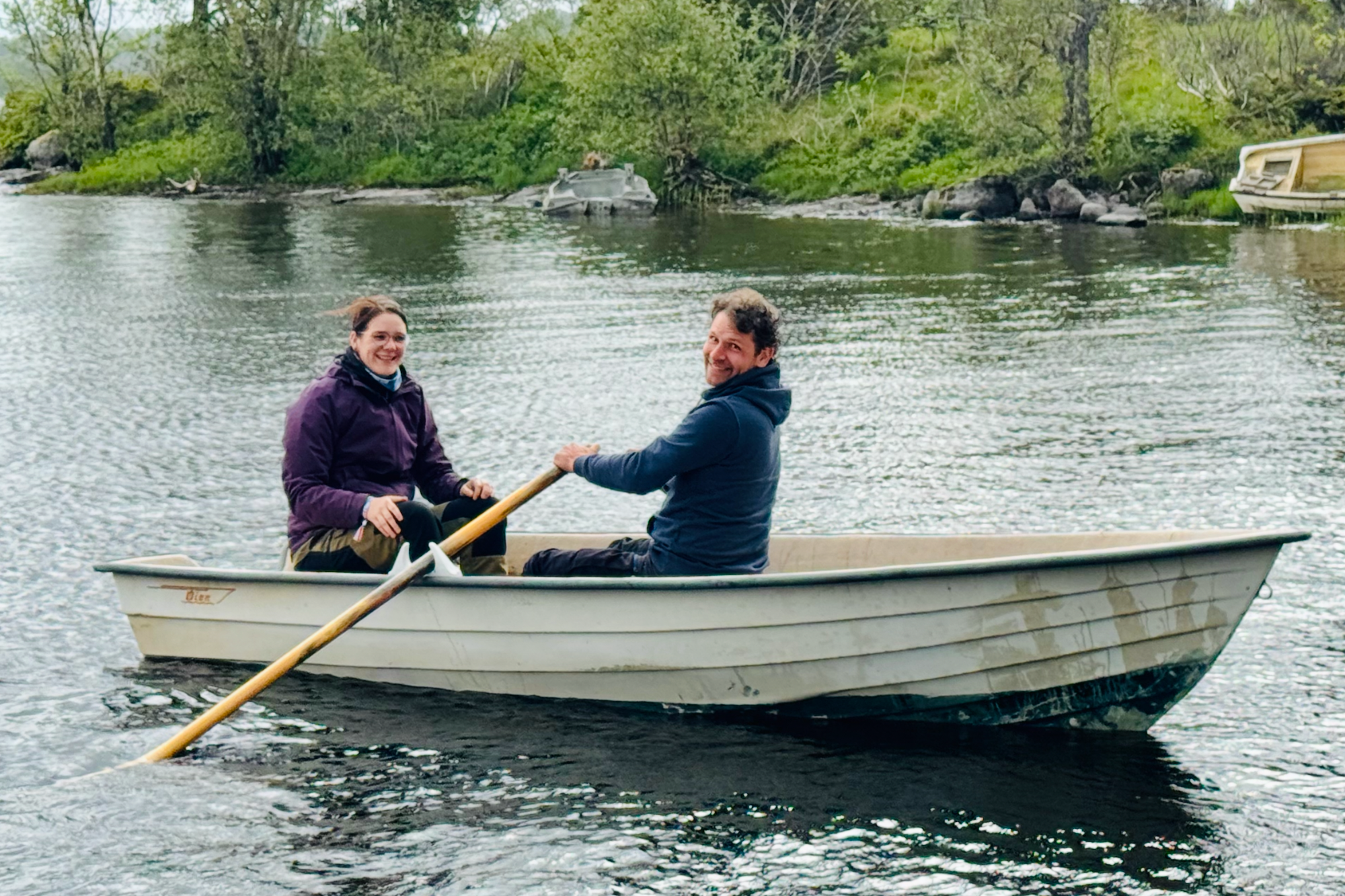 Heute heißt es Ruderboot fahren! Am Ufer entlang der Rallyestrecke sehen ein paar Boote, die nur darauf warteten, von uns in Bewegung gesetzt zu werden.