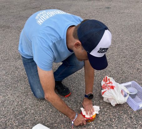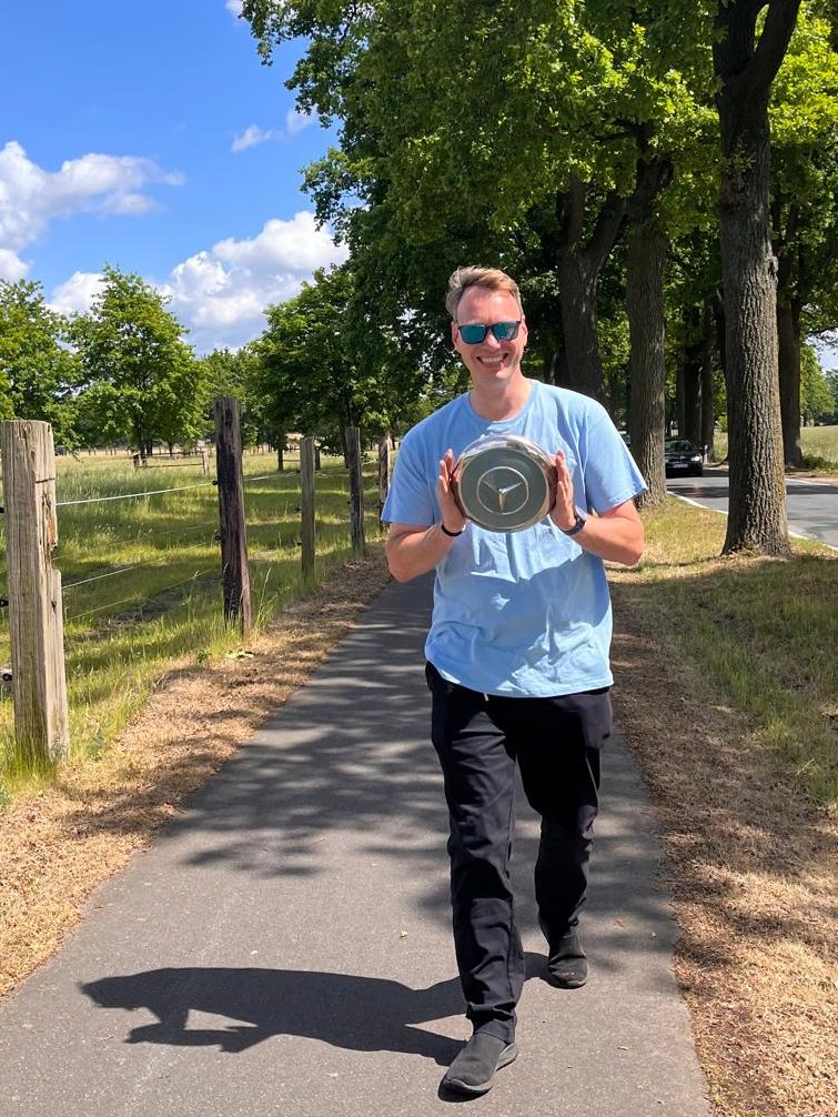 Zum Glück erweist sich Ronny vom Team Rasselbande (#95) als Retter in höchster Kappennot und findet die abtrünnige Radkappe im Gras wieder. Die Karma-Punkte des Tages sind ihm sicher.