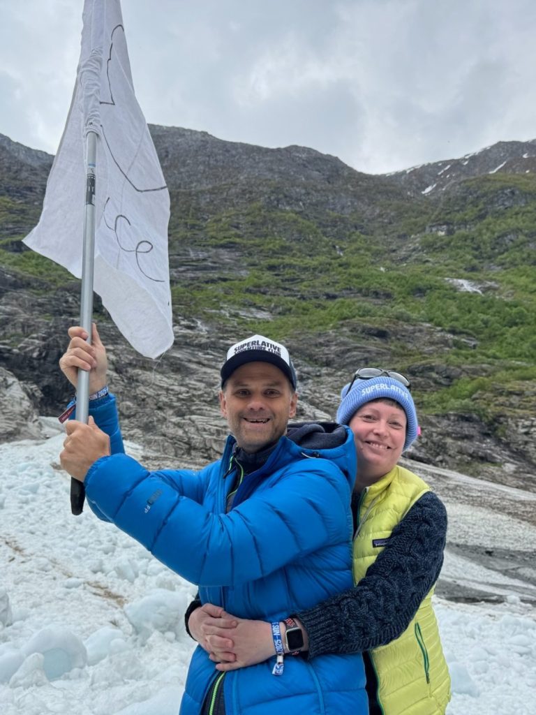 Doch wir hatten eine Road Mission auf dem Program: Wir hissten wir unsere Peace-Fahne direkt auf dem Gletschereis.
