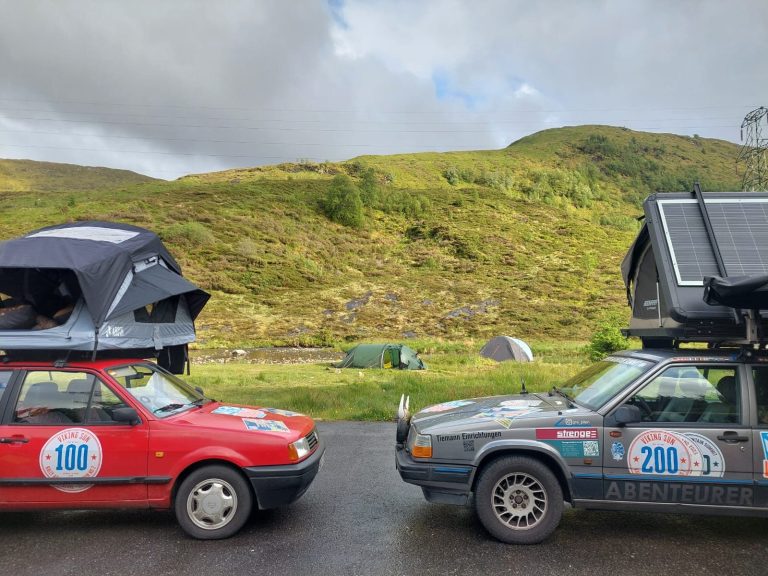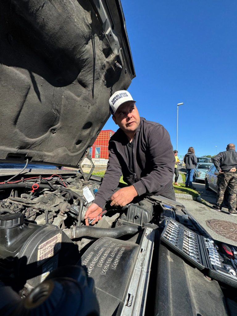 Der Tag begann mit einer kleinen Herausforderung: Beim Volvo von Alex & Brino machte die Batterie wieder Ärger. Zum Glück war Dennis mit seinem Rescue Car nicht weit entfernt. Mit geübten Handgriffen setzte er einen neuen Regler an der Lichtmaschine ein, und schon war der Volvo wieder startklar.