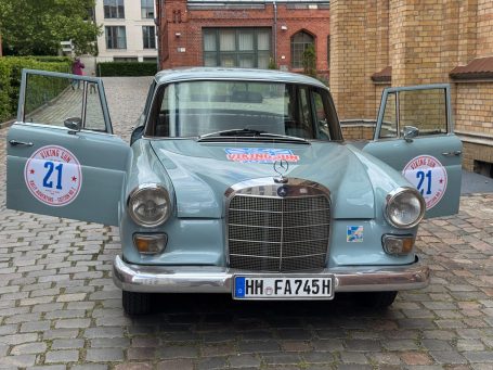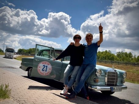 Während ich den T3-Charme genießen durfte, haben sich Johanna und Juliane zusammengetan und das Mercedes-Team gebildet. Die beiden hatten sichtlich Spaß und waren mit ihrem Stern auf der Haube bestens unterwegs.