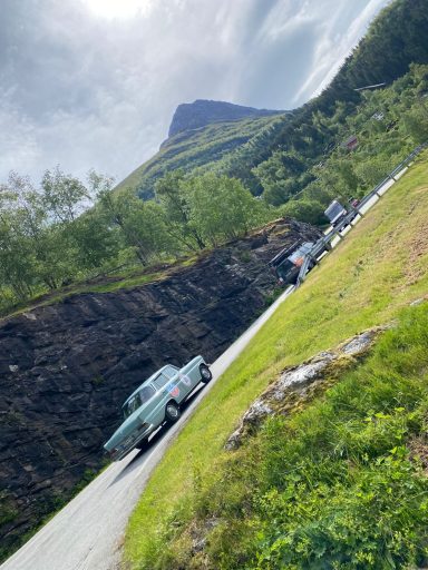 Manchmal gibt es Momente auf der Rally, die einem einfach den Atem rauben – und unser kurzer Zwischenstopp am Geiranger Fjord war genau so einer. Der Anblick war einfach überwältigend: Das tiefblaue Wasser, umrahmt von steilen, grünen Berghängen, und darüber der weite Himmel.