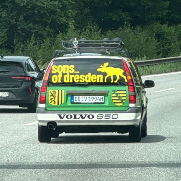 Auf dem Weg dorthin musste ich die Flosse treten! Mit ordentlich Schwung, rasselndem Motor und qualmenden Auspuff überholte wir am Berg einen froschgrünen Golf I udn T2-Bus aus Greifswald. Für einen Moment verwandelte sich mein Fahrzeug in eine echte Rennflossere.