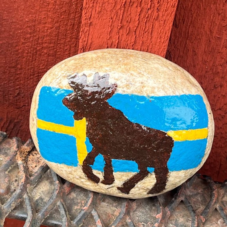 Wir machen dort unsere Wikinger-Challenge: Mit einem echten schwedischen Ast, Wind vom Ozean, einem Feuerstein von der dänischen Küste, deutschem Eisen und Wasser aus der Ostsee krabbeln wir auf allen vieren um das Denkmal. Was extrem schräg aussieht, soll uns alles Gute für unsere Reise schenken.