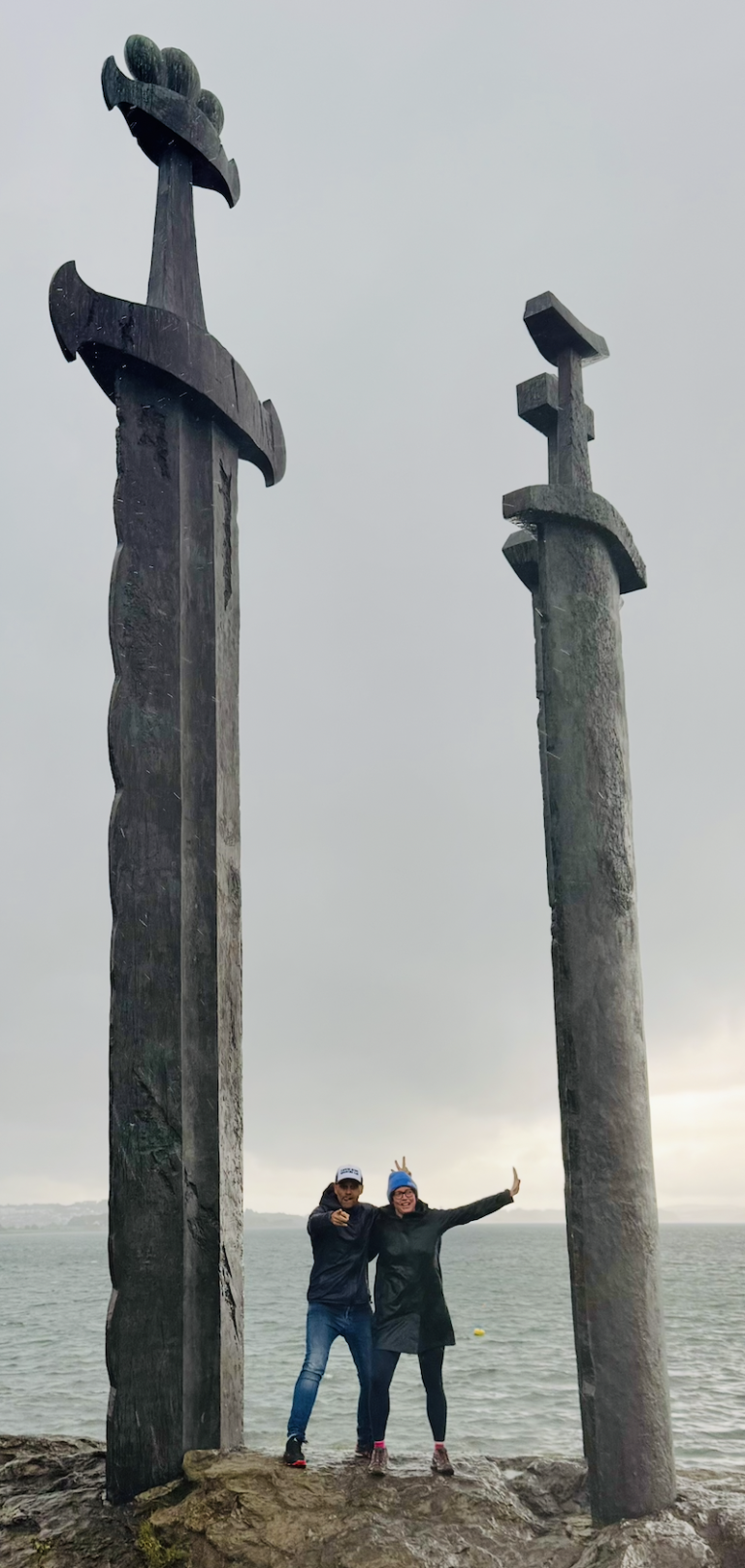 Die drei Schwerter im Felsen erinnern an die legendäre Schlacht am Hafrsfjord im Jahr 872. Diese Schlacht markiert einen entscheidenden Moment in der Geschichte Norwegens, denn hier soll König Harald Schönhaar Norwegen geeint und sich zum ersten König des Landes erklärt haben.